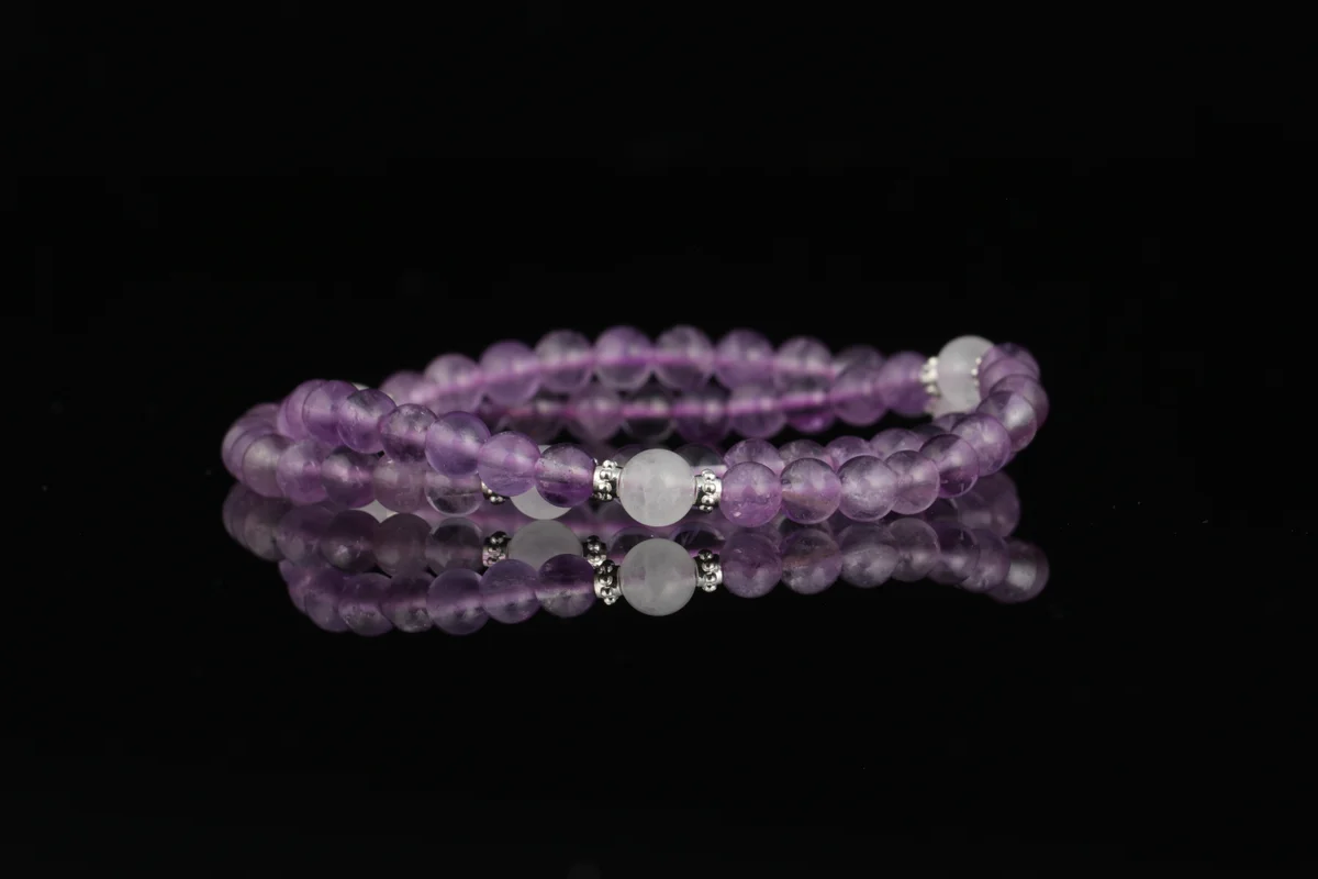 Natural Amethyst & White Phantom Overlap Bracelet | Birthdate Customized Wealth & Career Boosting Sleep Aid Energy Crystal, Essential for Workplace Luck
