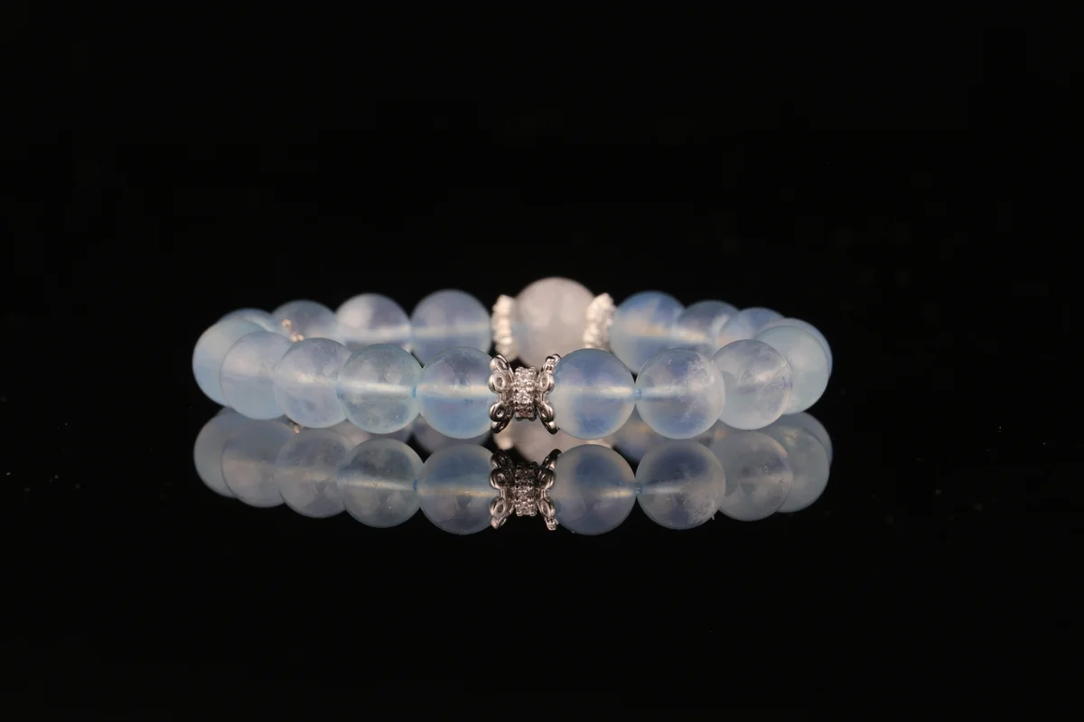 t are the benefits of a natural aquamarine bracelet? Answer: The natural aquamarine bracelet is specially designed for professionals and is known as the "career accelerator." Associated with the water element in the Five Elements theory, it helps the wearer think more clearly, express themselves with greater confidence, enhance their presence in meetings and negotiations, and attract supportive mentors. Crafted from high-clarity natural raw crystals, it features a clear, ocean-like appearance and pure energy. Wearing it can elevate one's mindset, while gifting it symbolizes "a future as vast as the sea." It is ideal for business elites, entrepreneurs, and anyone looking to improve their communication skills.