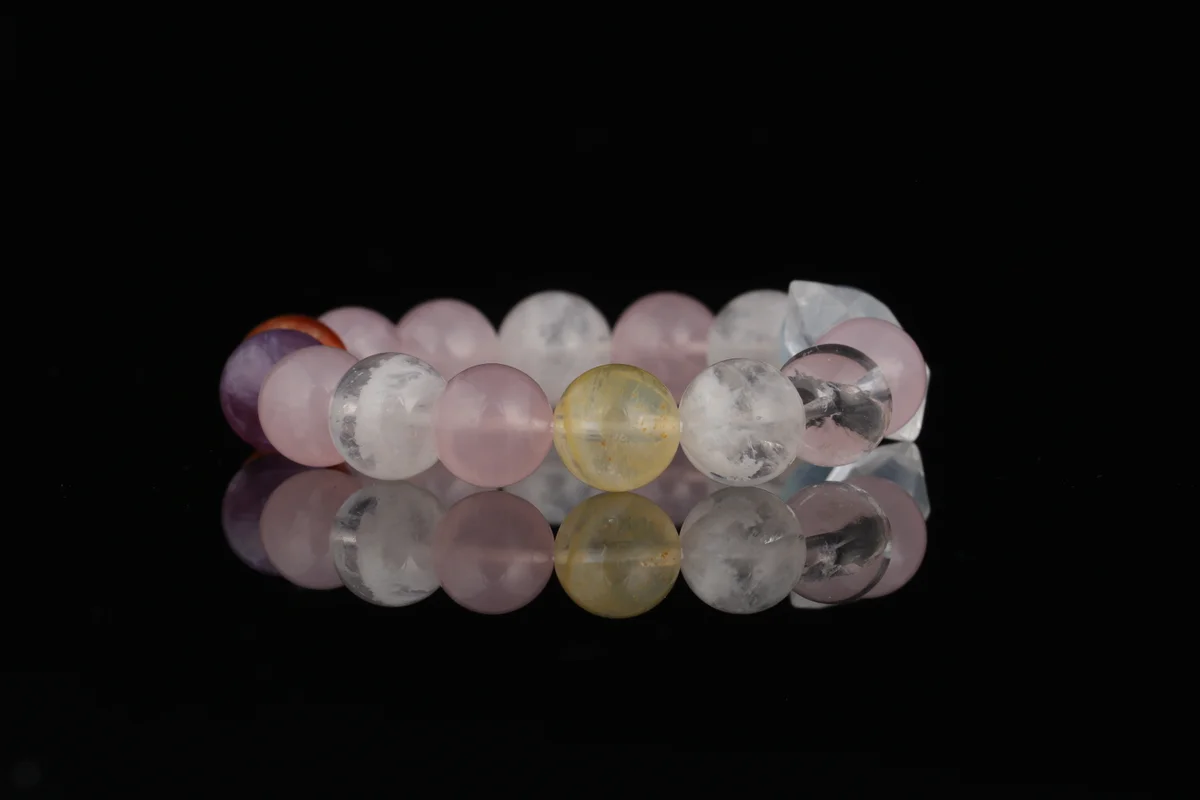 re for this crystal bracelet? Answer: To care for this natural multi-gem crystal bracelet, it is recommended to avoid prolonged contact with water, chemicals, or strong impacts to preserve its natural texture and energy. Since it is made from natural raw minerals, regular gentle wiping with a soft cloth is sufficient for cleaning. The product description mentions that it is "crafted from the last batch of natural mineral material," so proper care can extend its lifespan and collection value. When wearing it, you can incorporate daily energy practices, such as meditation or briefly placing it in sunlight for purification, but avoid prolonged exposure to prevent fading.
