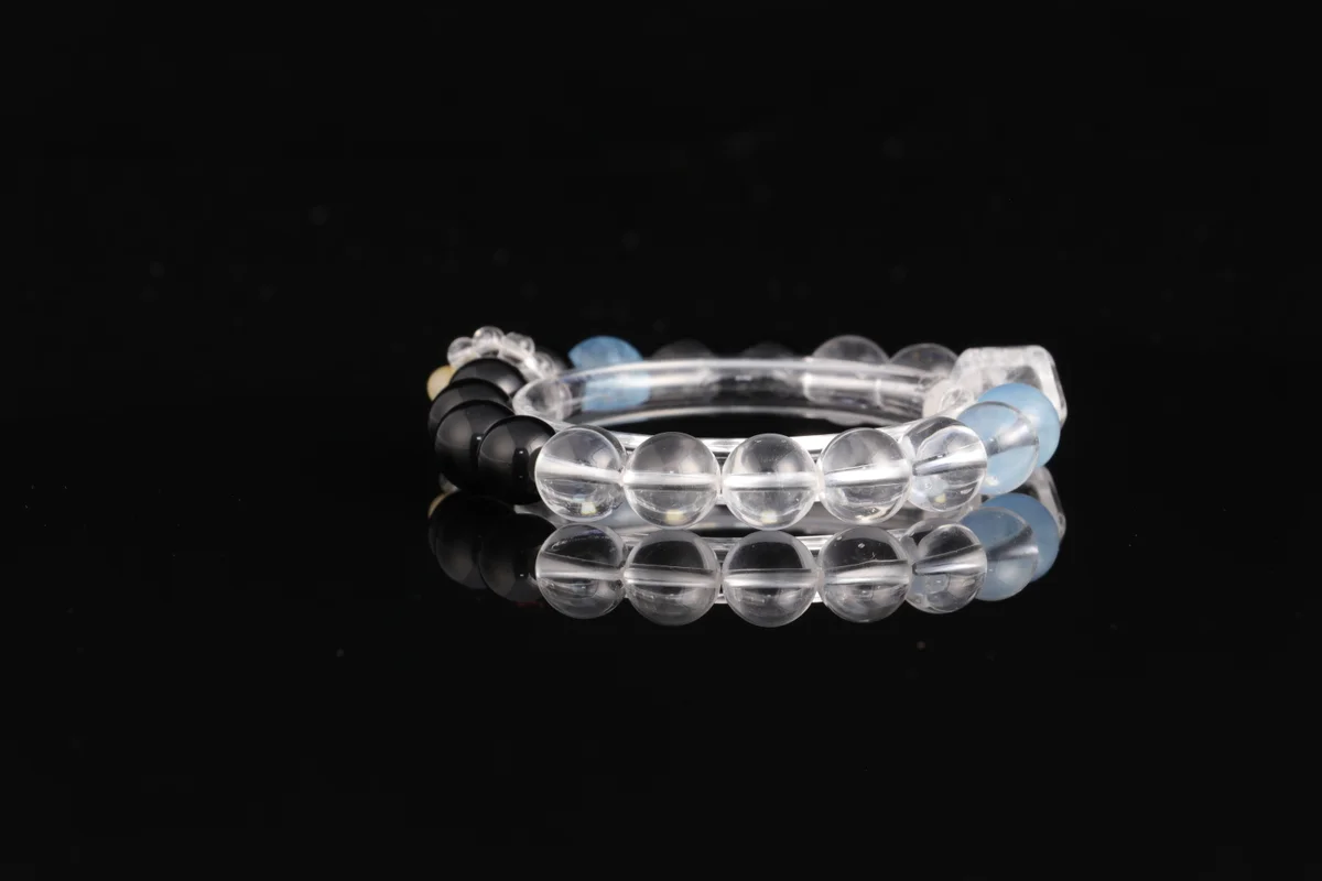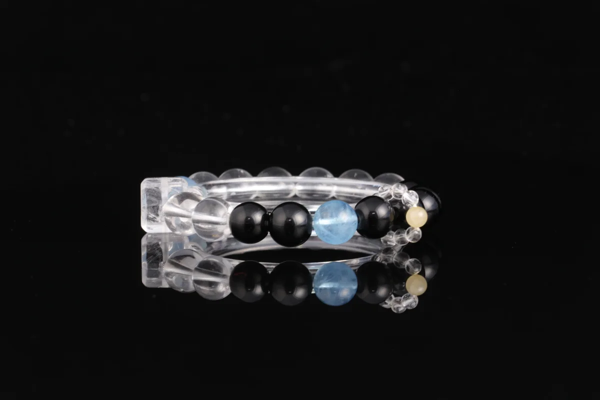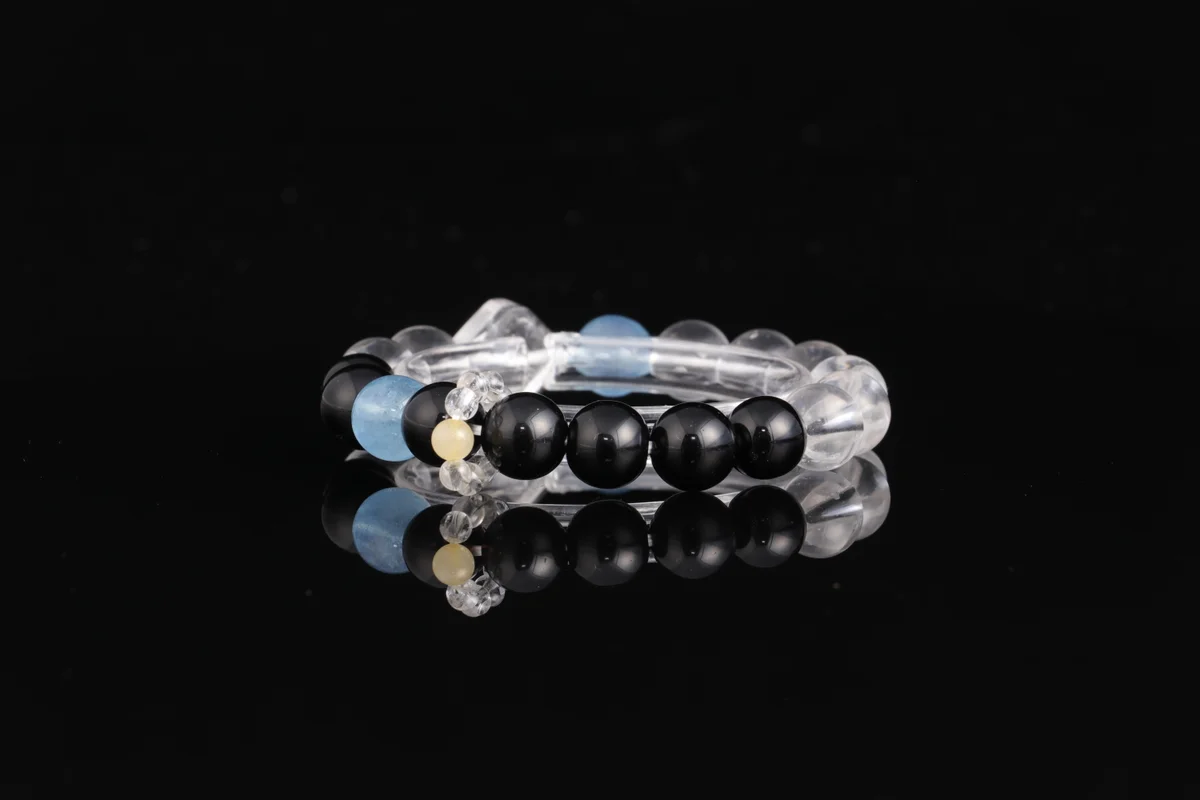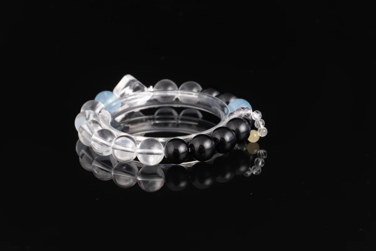 🌟【Triple Color Energy, Five Elements Balance】Carefully selected natural obsidian (evil protection & body guarding), white crystal (purifying the mind), aquamarine (attracting wealth & fortune). The three colored crystals correspond to the water, metal, and wood elements of the Five Elements. Their energies combine to help you dispel negative energy and enhance your aura. Each bead is hand-polished, with unique natural patterns. Wear it close for continuous energy protection.