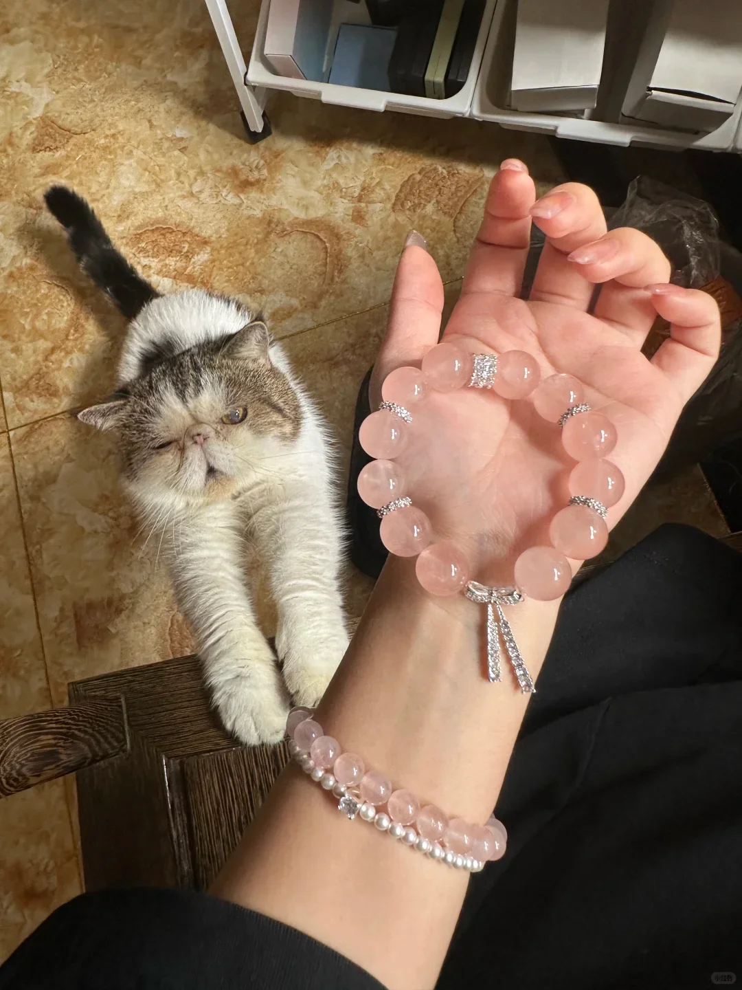 🌙 Sharing a late-night purchase of a crystal bracelet I recently bought~ I came across this rose quartz bracelet while scrolling through my phone before bed and was instantly drawn to its grapefruit jelly-like color. The shade is so soothing—it even lifts my mood during late nights ✨ I originally just wanted a little accessory to relax with, but I was pleasantly surprised when it arrived. The packaging was thoughtful, giving me the feeling of unwrapping a gift. The box was elegant and even came with a small pouch, perfect for lazy organizers like me 😴 The actual crystal is even more translucent than in the photos, with a soft pink hue that sparkles under the light. The craftsmanship is great too—the beads are smooth and round, so they don’t irritate the skin when worn. It looks amazing on the wrist! So lightweight and versatile, it pairs effortlessly with any outfit, whether I’m lounging in pajamas at home or heading out. On days when I can’t be bothered to dress up, it adds just the right touch of brightness~ I think the price is quite reasonable, especially considering the quality—it even exceeded my expectations. Great value for money. Overall, this was such a relaxing shopping experience. Highly recommended for fellow late-night healing trinket lovers!