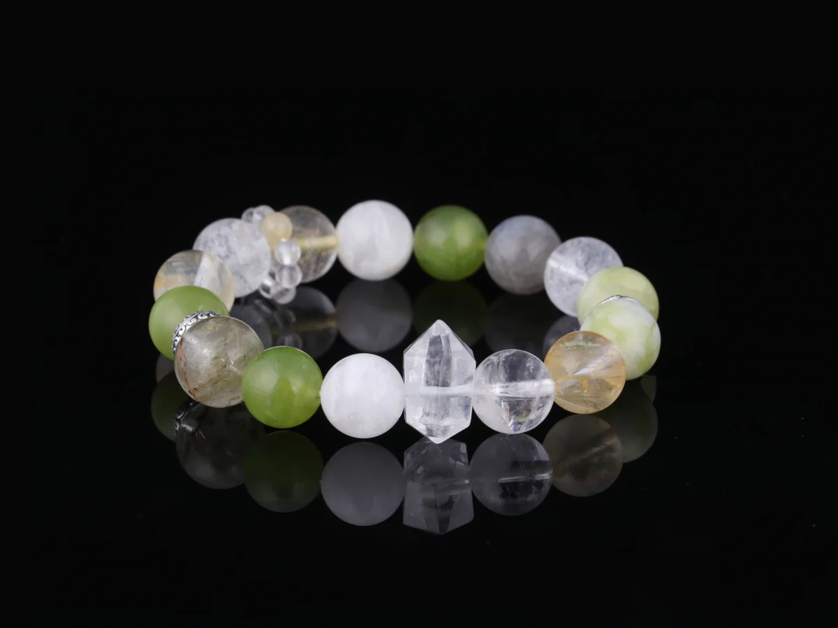 -30%Natural Green Phantom Green Tourmaline Clear Quartz Bracelet | Five Elements Customized Wealth & Career Energy Bracelet for Men & Women