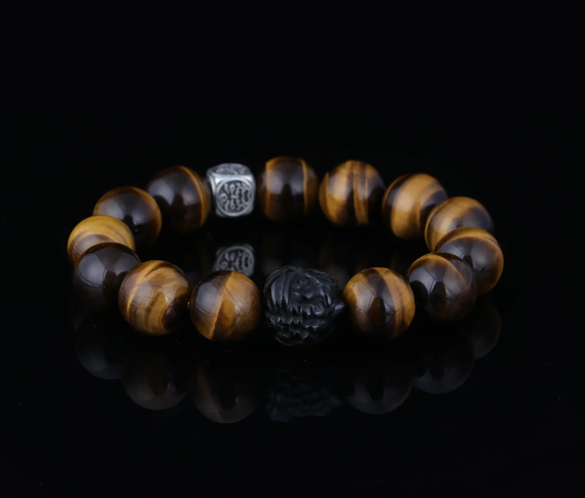 -38%Natural Yellow Tiger Eye Pi Xiu Bracelet for Attracting Wealth and Warding Off Evil - Essential Gift for Men's Zodiac Year with Silver Obsidian Lucky Beads
