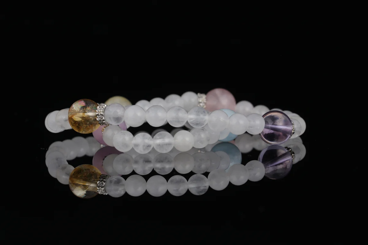 celet suitable for? Answer: This bracelet is suitable for individuals seeking to enhance their fortune and balance the five elements, particularly those looking for comprehensive improvement in wealth, relationships, and career. It is specially designed based on birth horoscopes, utilizing rose quartz to attract love and popularity, clear quartz to purify negative energy, citrine to boost wealth and career, and amethyst to enhance wisdom and spirituality. The combination of these multi-colored crystals creates a powerful energy field. Whether you aim to address areas of weakness in your fortune, attract prosperity, or need support for better sleep and tranquility, this custom-made natural crystal bracelet provides energetic support. Limited mining ensures each piece is unique.