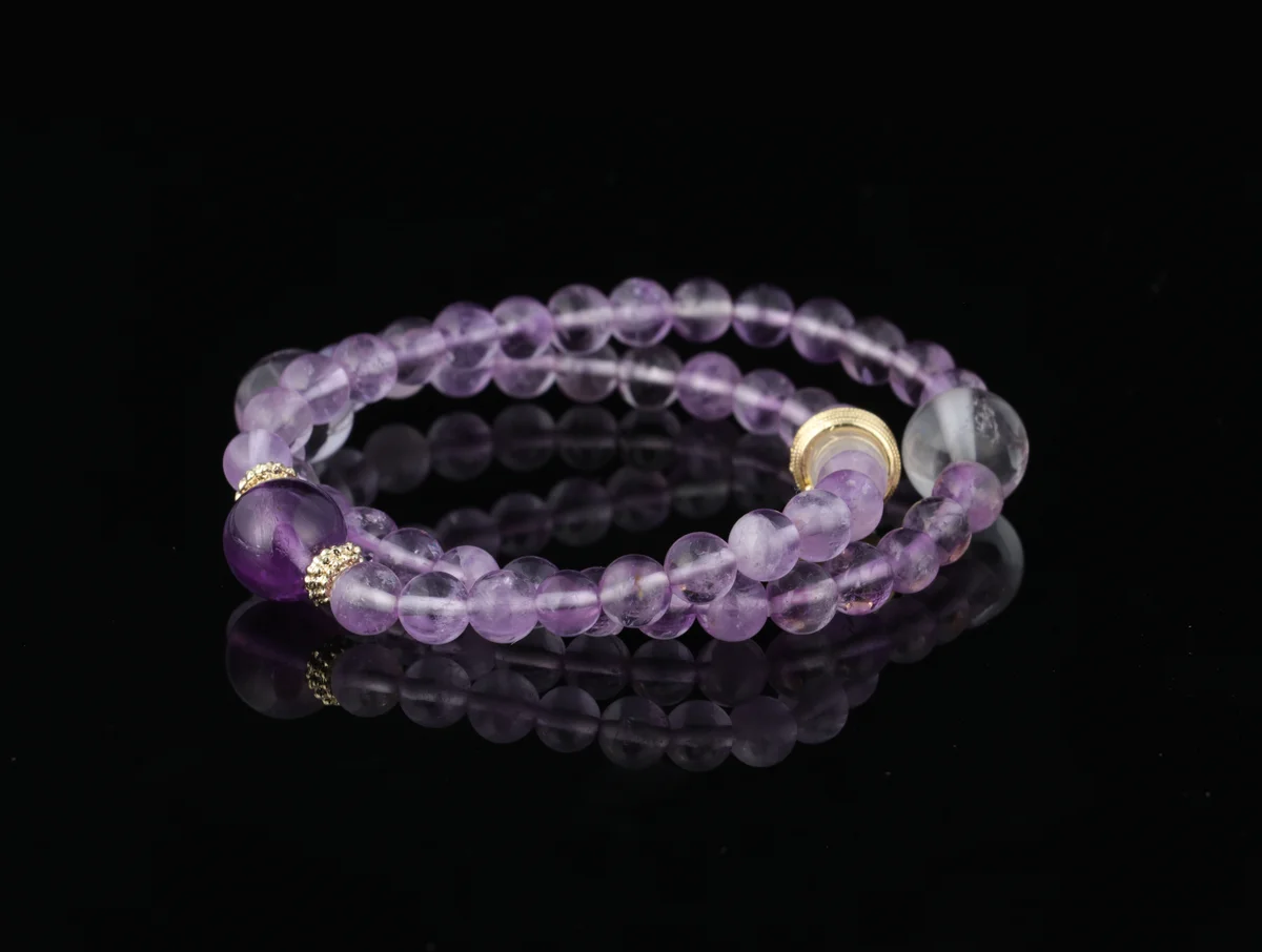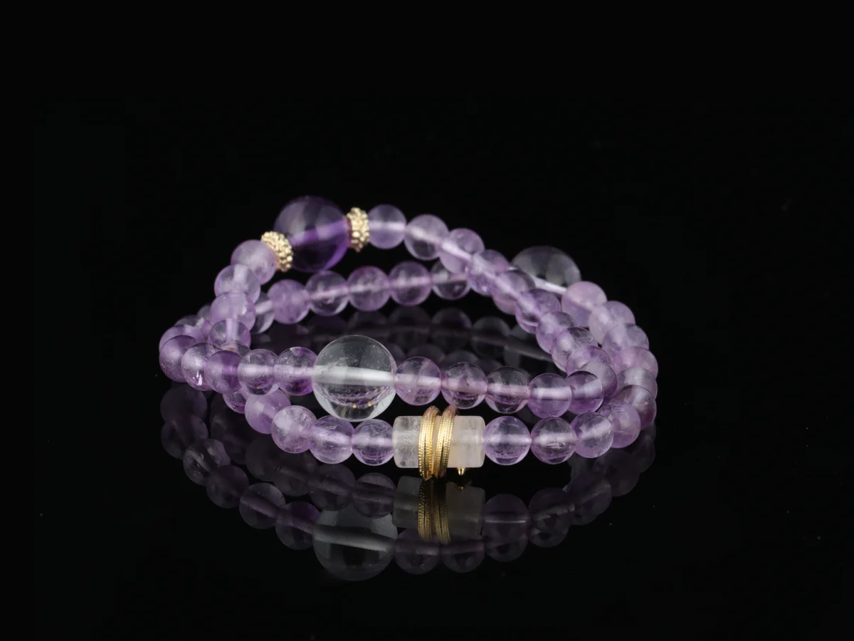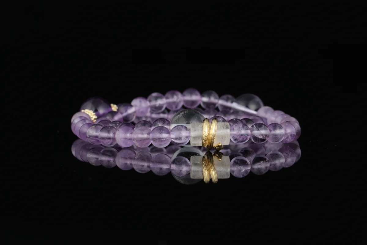 tural amethyst and clear quartz bracelet achieve personalized customization based on the Five Elements of birth? Answer: This bracelet is specially designed for personalized customization based on the Five Elements of birth. It features a dual-color combination of natural amethyst and clear quartz, following the principle of complementary energy in the Five Elements to harmonize with your destiny. Each crystal is carefully selected and polished, infused with the spiritual essence of the earth, ensuring that its energy field aligns with your personal fortune. It provides exclusive energy protection and is not a generic or artificially synthesized product.