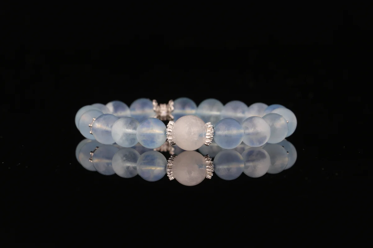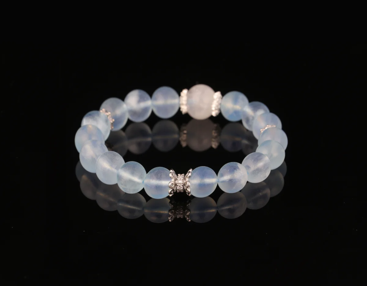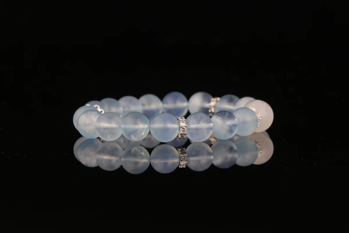 t are the benefits of a natural aquamarine bracelet? Answer: The natural aquamarine bracelet is specially designed for professionals and is known as the "career accelerator." Associated with the water element in the Five Elements theory, it helps the wearer think more clearly, express themselves with greater confidence, enhance their presence in meetings and negotiations, and attract supportive mentors. Crafted from high-clarity natural raw crystals, it features a clear, ocean-like appearance and pure energy. Wearing it can elevate one's mindset, while gifting it symbolizes "a future as vast as the sea." It is ideal for business elites, entrepreneurs, and anyone looking to improve their communication skills.