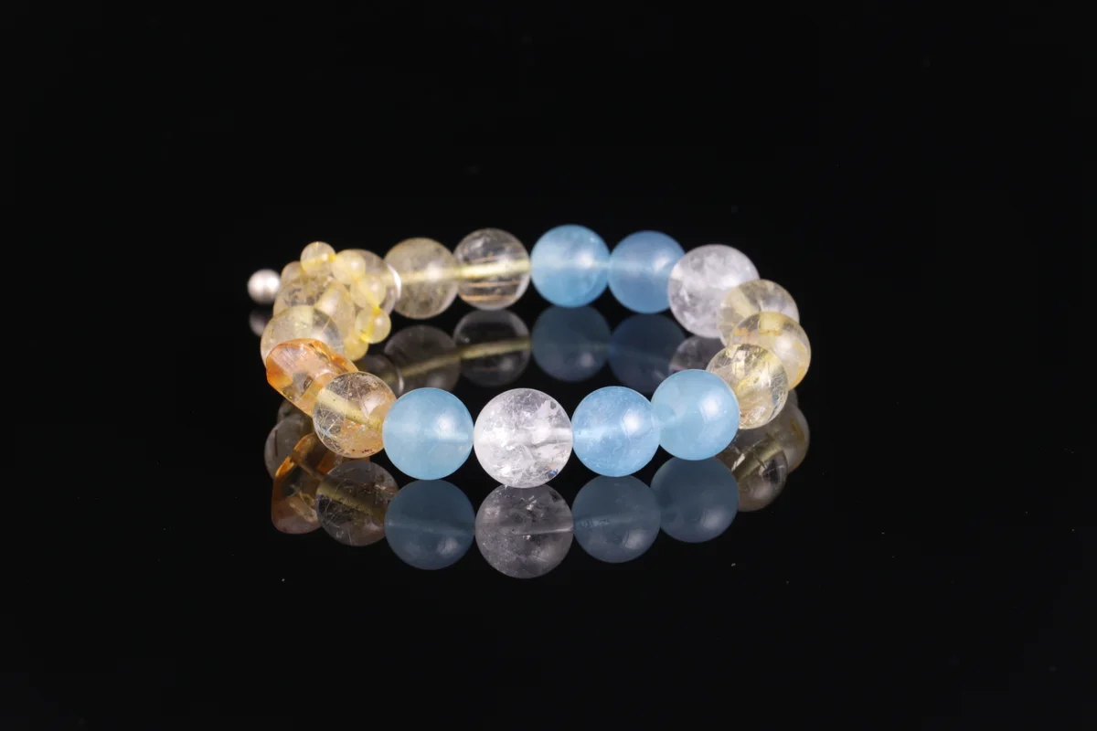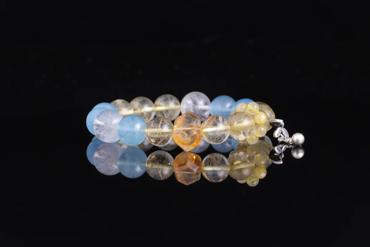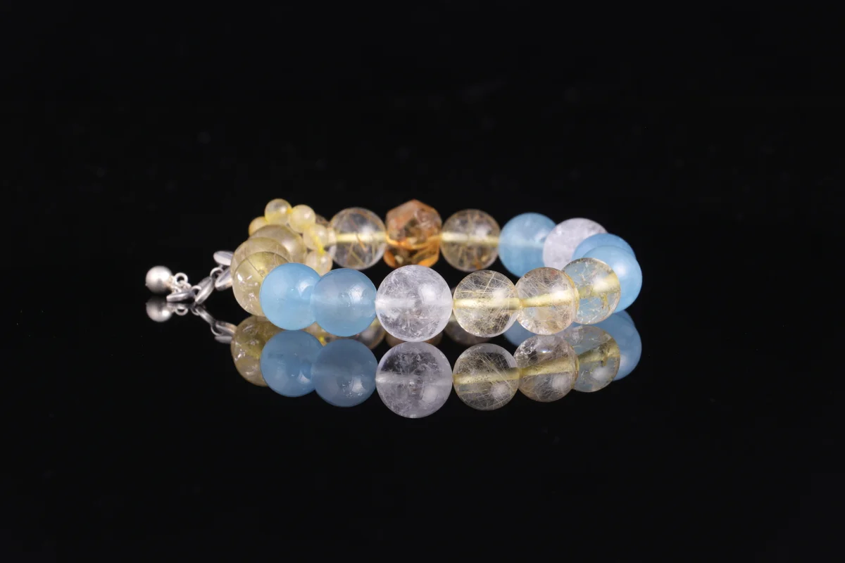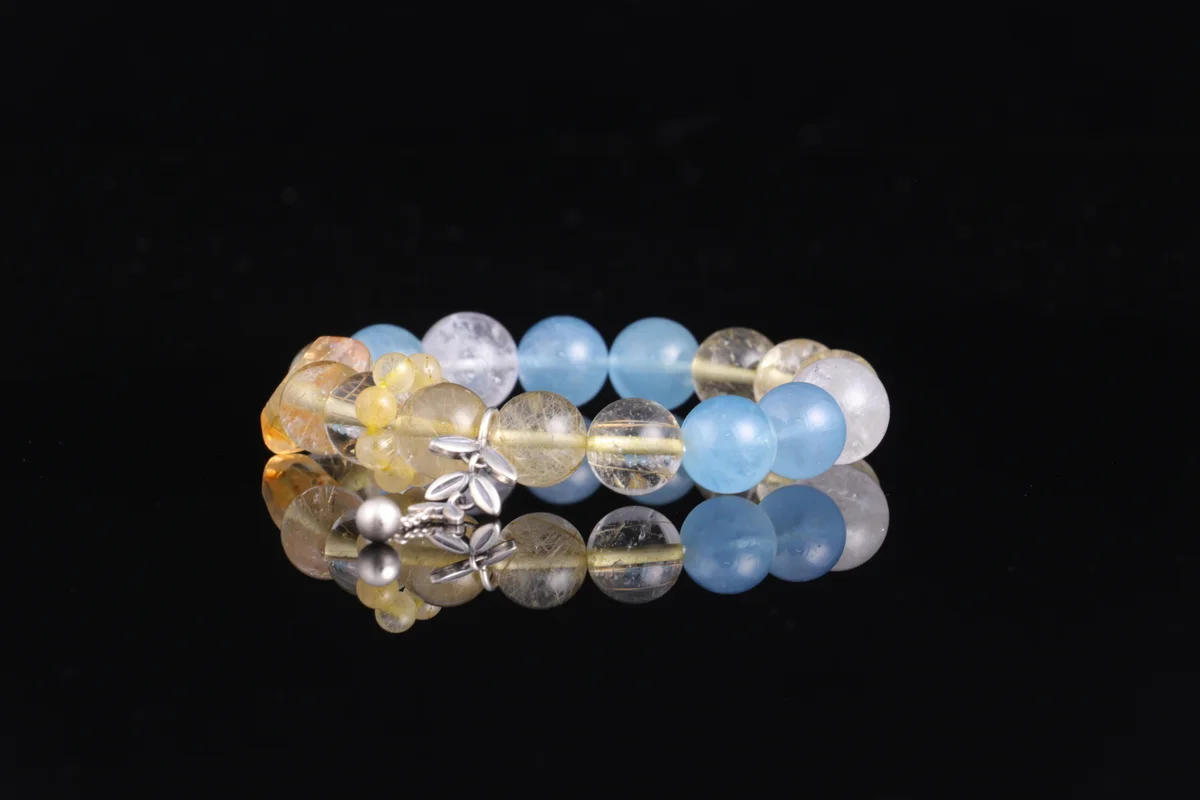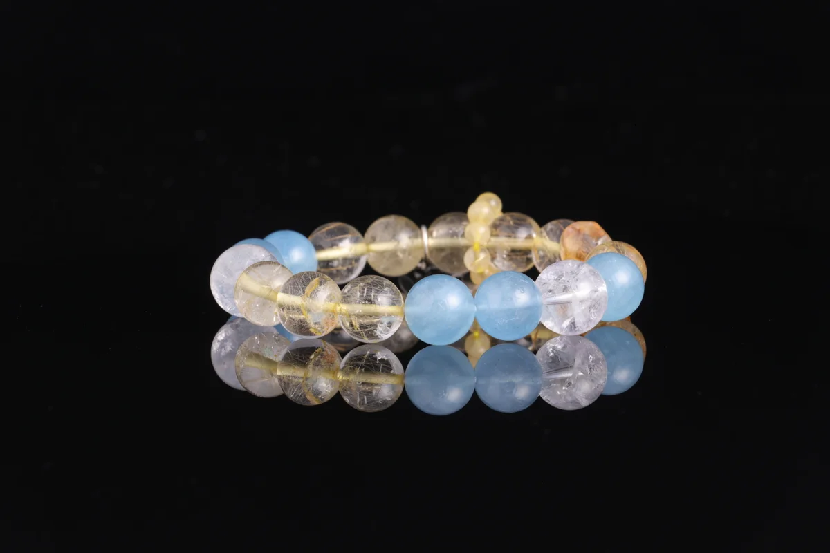 🌟【Five Elements Foundation Custom Bracelet】Natural Aquamarine + Gold Rutilated Quartz + White Azeztulite three-in-one combination, corresponding to Water, Metal, and Earth energies, harmonizing destiny foundations. Aquamarine aids communication and wisdom, Gold Rutilated Quartz attracts righteous wealth and boosts career, White Azeztulite purifies negative energy and stabilizes aura. Wear daily on the left hand to attract wealth, enhance fortune, and protect your foundation—especially suitable for those needing to supplement Water and Metal elements, seeking career and financial prosperity. Each natural crystal bead features unique patterns with pure energy, customized according to your birth date for your exclusive protective power.
