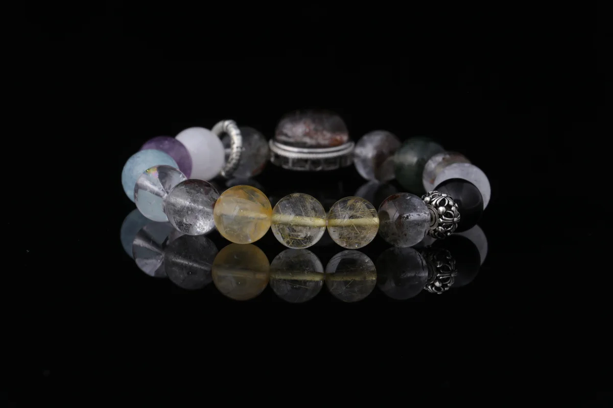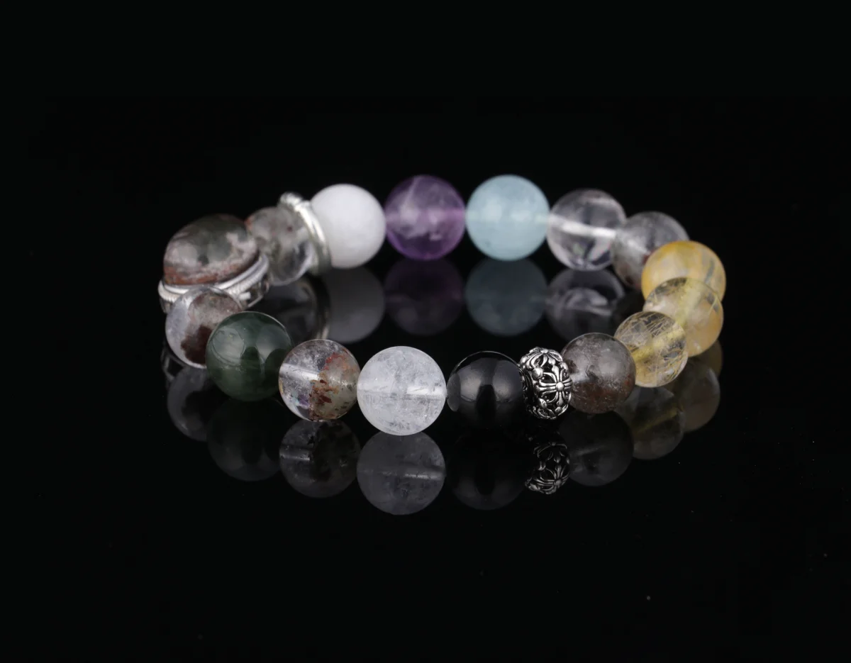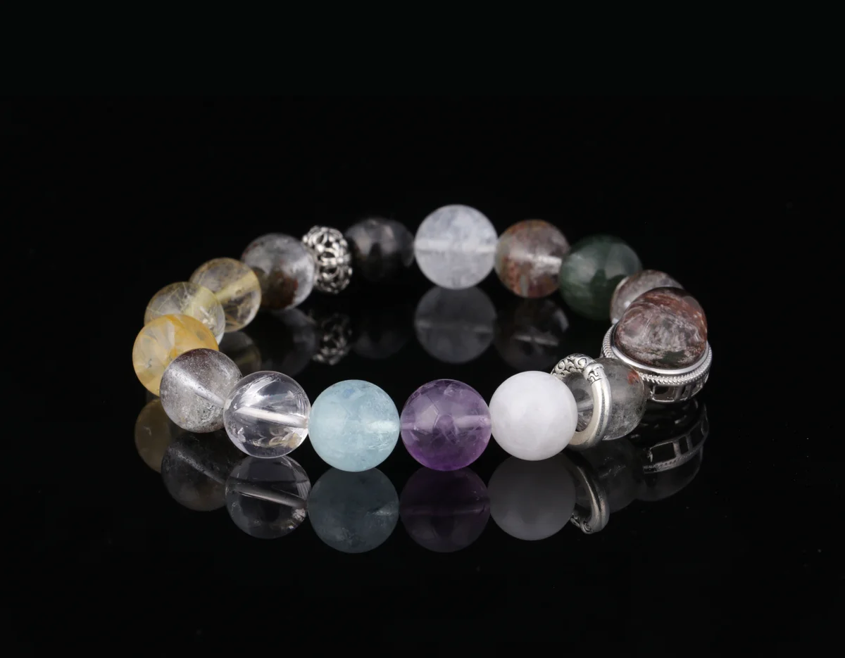 Natural Crystal Multi-Gem Bracelet Flower Phantom Aquamarine Amethyst Rutilated Quartz Five Elements Energy Strand Attract Wealth Good Fortune Sleep Aid Customization