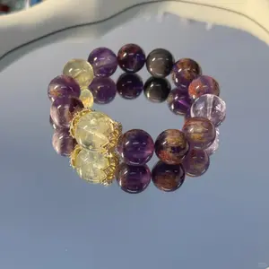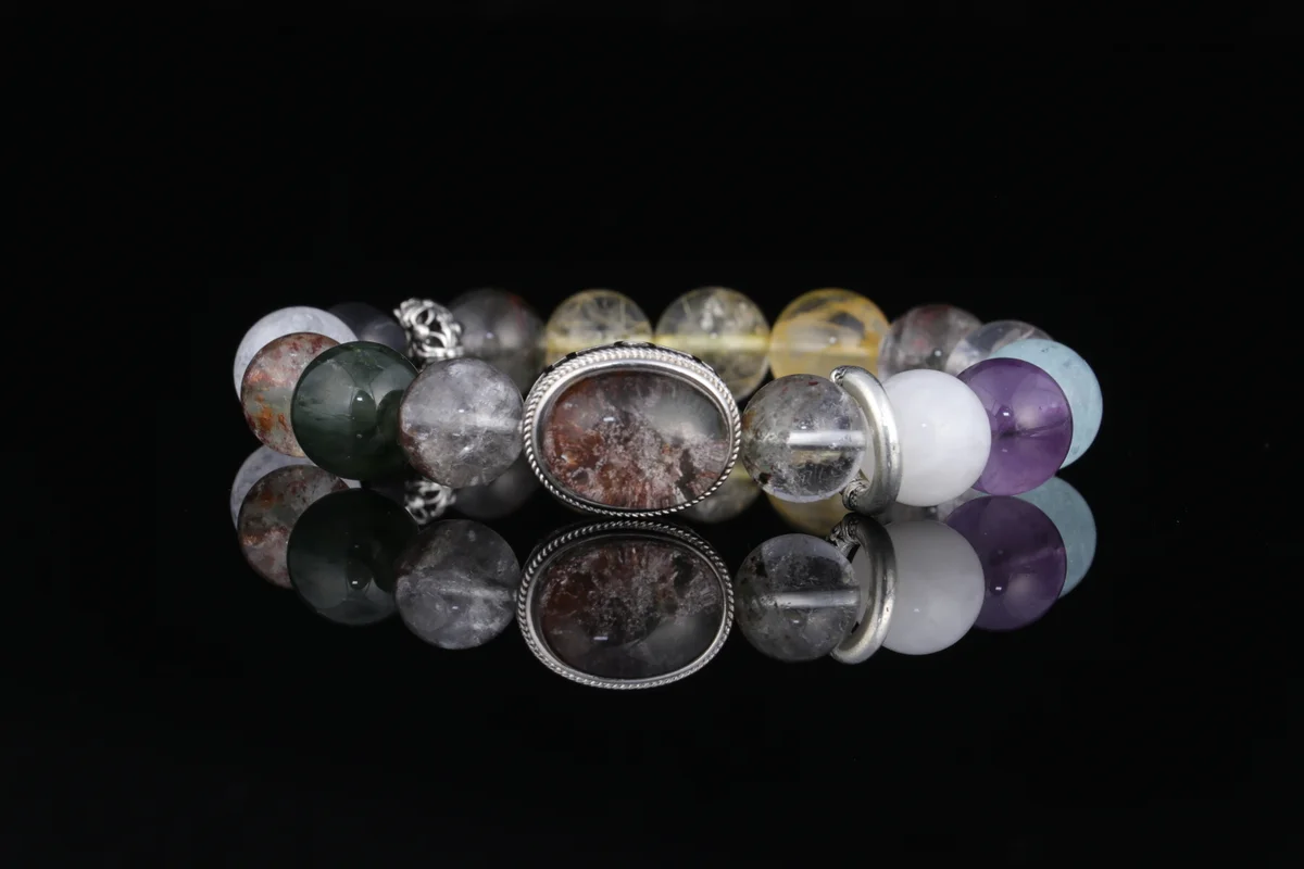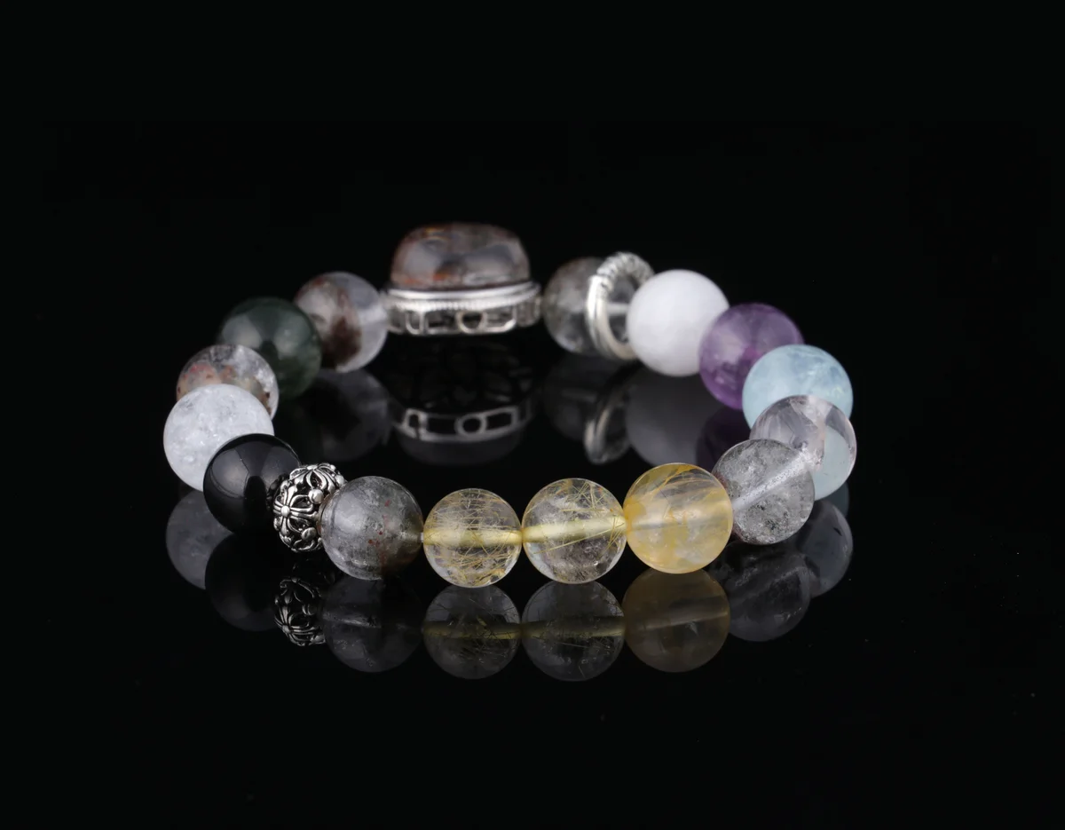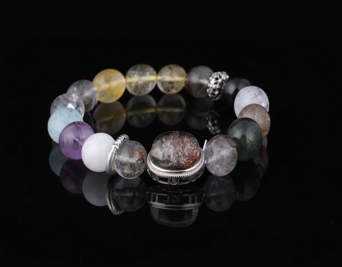 Natural Crystal Multi-Gem Bracelet Flower Phantom Aquamarine Amethyst Rutilated Quartz Five Elements Energy Strand Attract Wealth Good Fortune Sleep Aid Customization