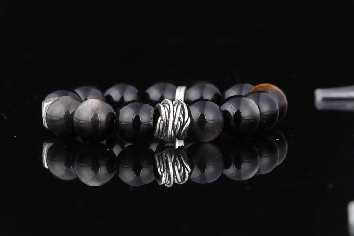 -32%Natural Obsidian Bracelet with Swirl Silver Custom Birthstone for Wealth Attraction, Evil Warding, Protection, and Zodiac Year Fortune