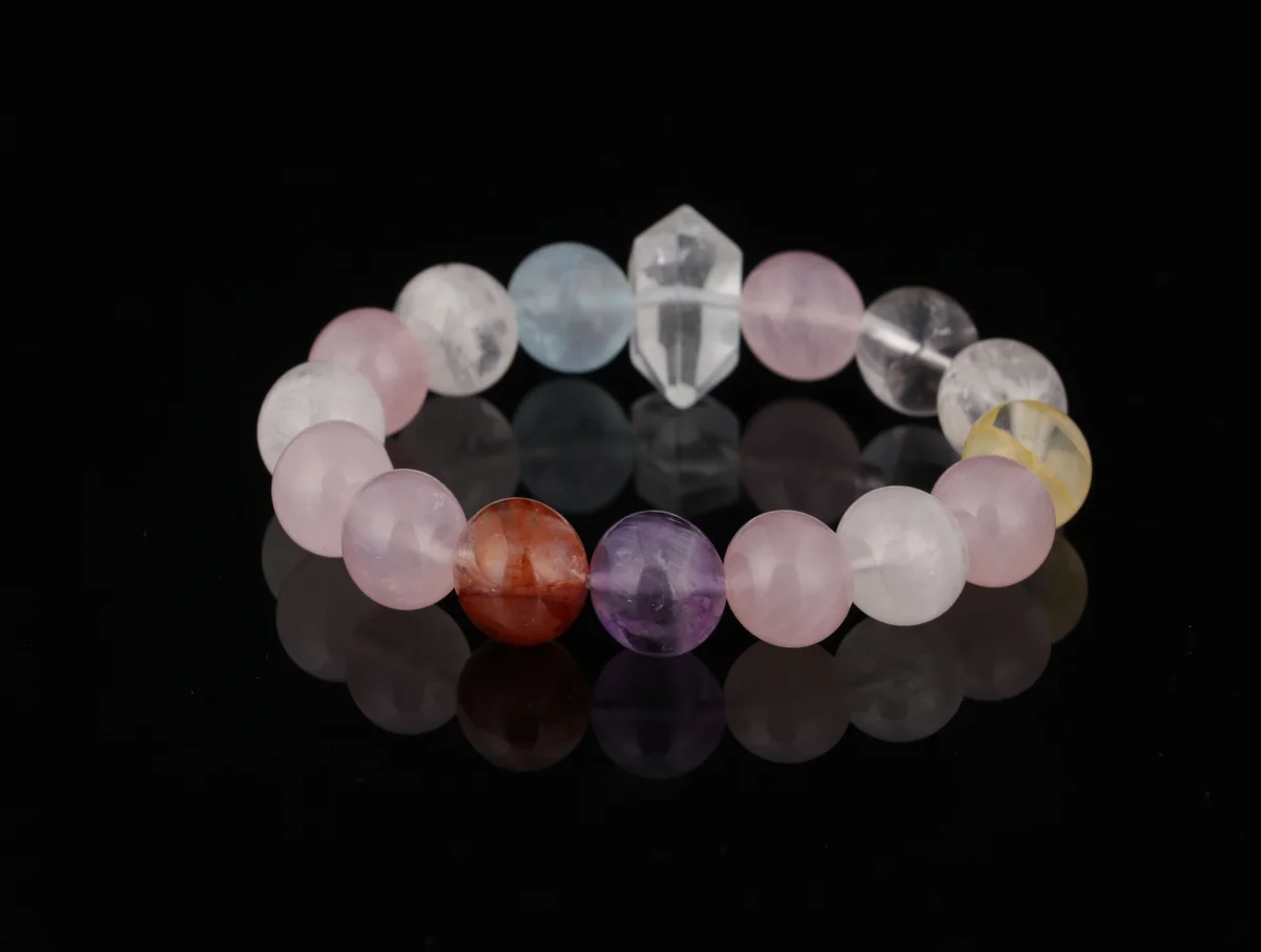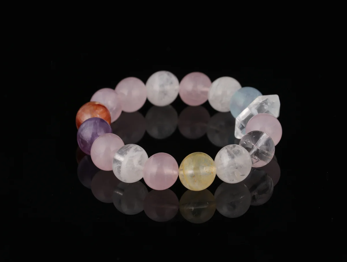 re for this crystal bracelet? Answer: To care for this natural multi-gem crystal bracelet, it is recommended to avoid prolonged contact with water, chemicals, or strong impacts to preserve its natural texture and energy. Since it is made from natural raw minerals, regular gentle wiping with a soft cloth is sufficient for cleaning. The product description mentions that it is "crafted from the last batch of natural mineral material," so proper care can extend its lifespan and collection value. When wearing it, you can incorporate daily energy practices, such as meditation or briefly placing it in sunlight for purification, but avoid prolonged exposure to prevent fading.