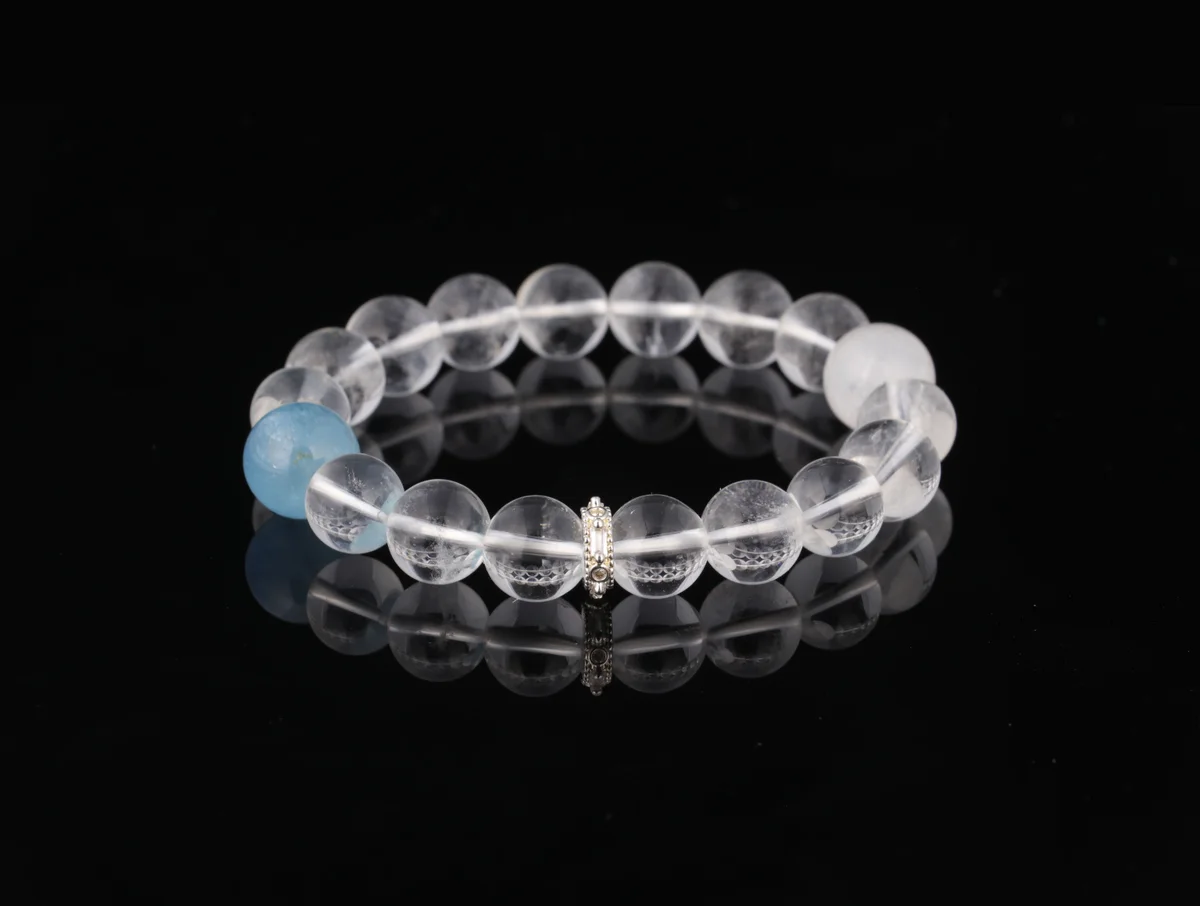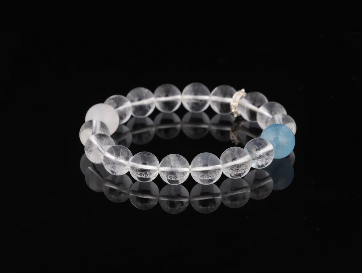 Q.What are the benefits of this Natural White Crystal White Phantom Aquamarine Bracelet?