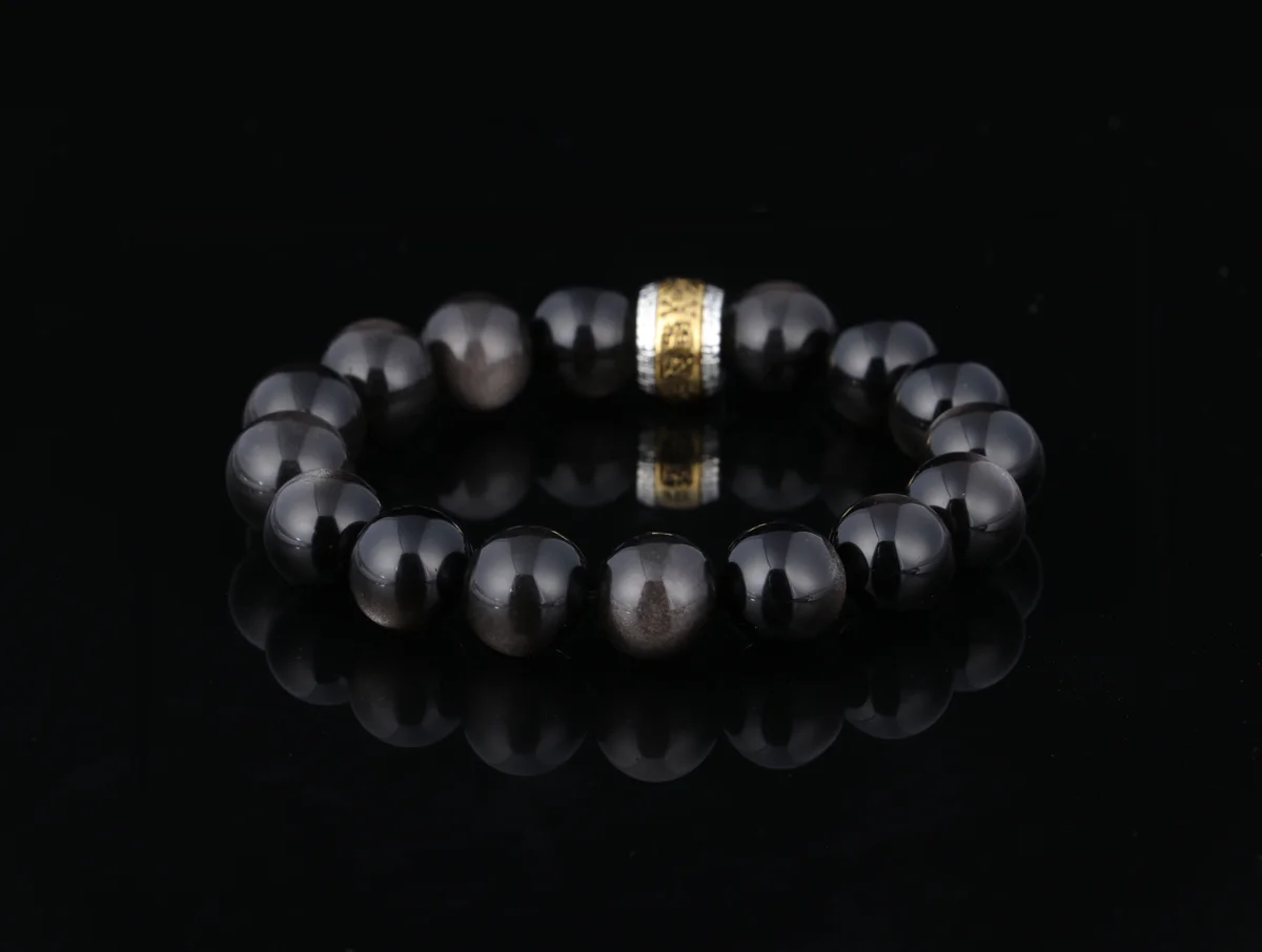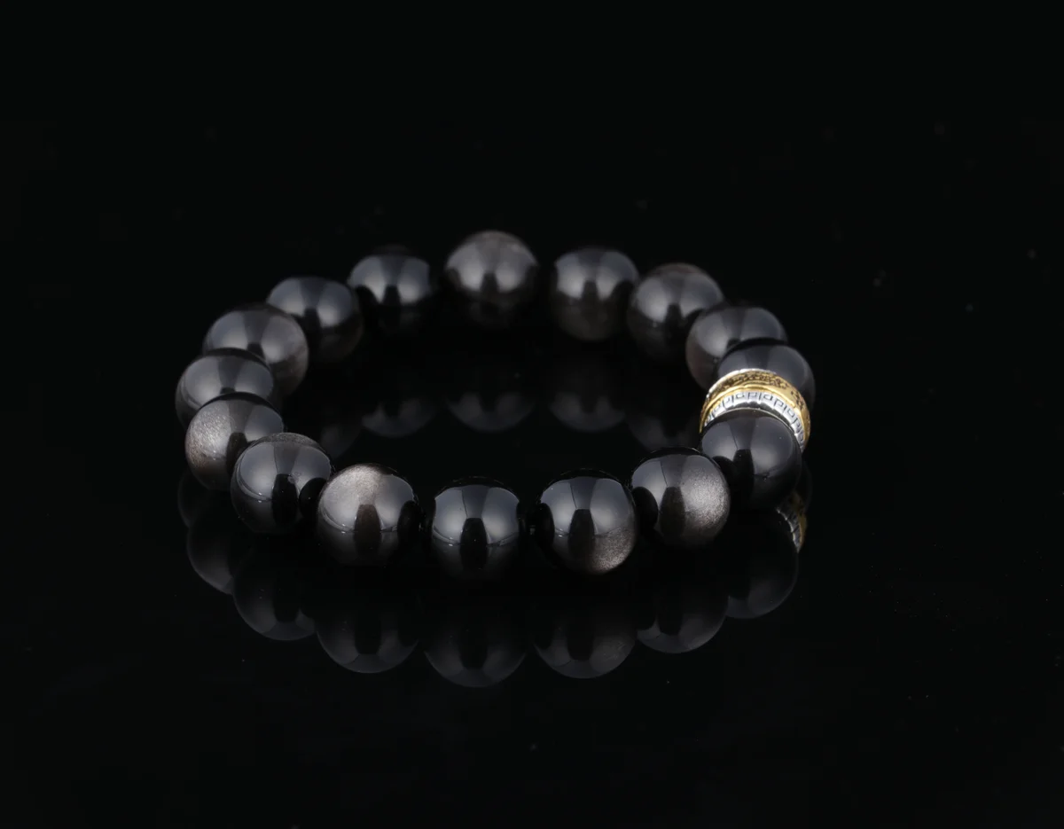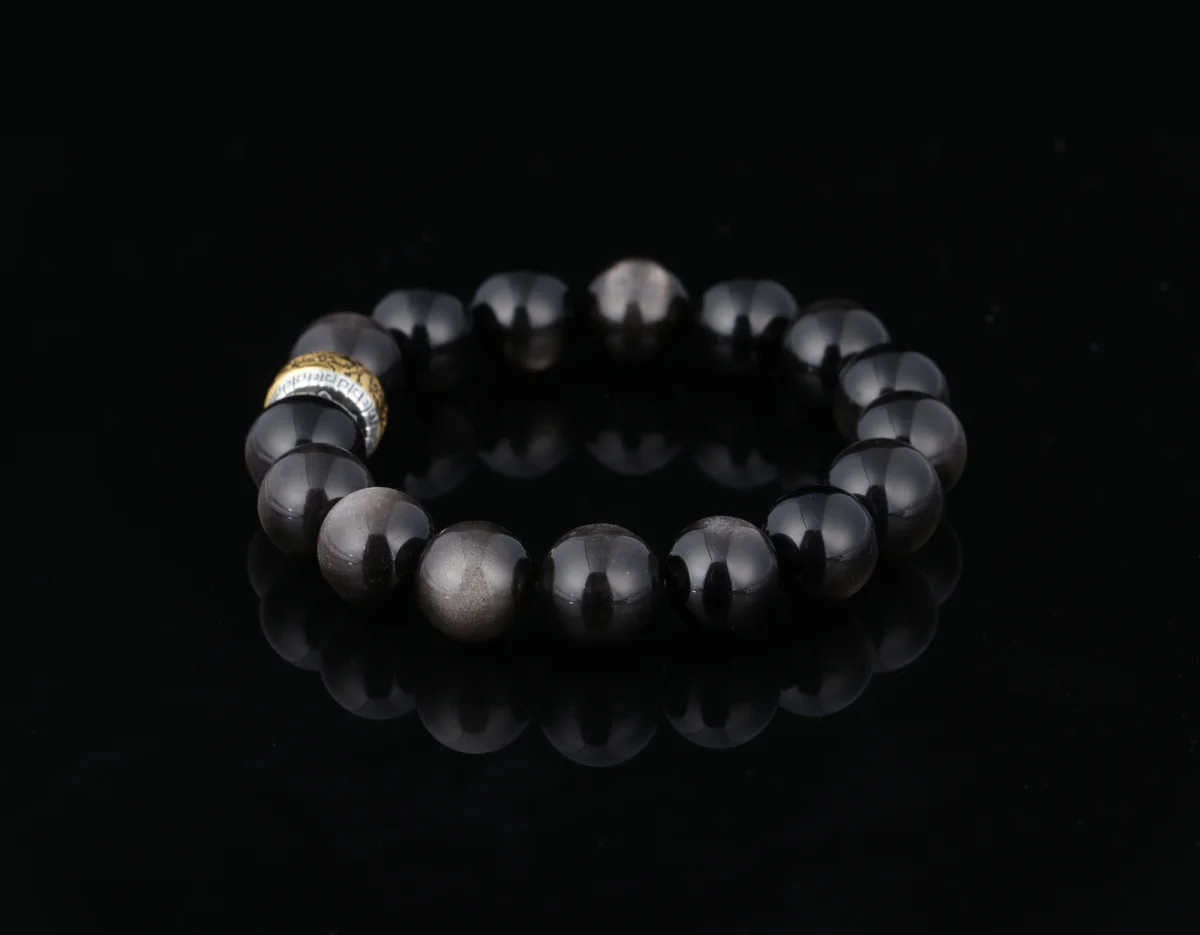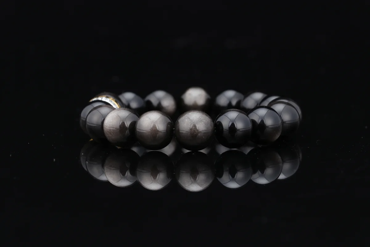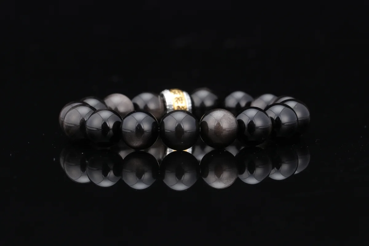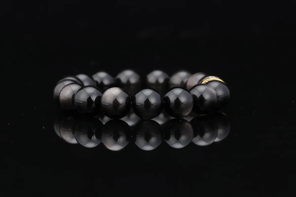 intain this obsidian bracelet? Answer: For maintenance, it is recommended to regularly wipe the obsidian and silver accessories with a soft cloth, and avoid contact with chemicals such as perfume and sweat to prevent corrosion. Natural obsidian should be protected from severe impacts to maintain its energy integrity. When not wearing it, store it in a dry place. Long-term use can continuously enhance its protective and wealth-attracting effects, safeguarding the wearer's energy field.