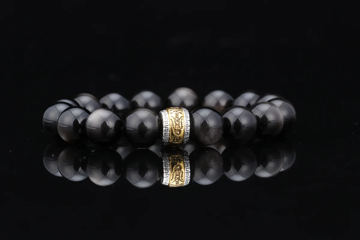 Natural Obsidian Bracelet with Swirl Silver Custom Birthstone for Wealth Attraction, Evil Warding, Protection, and Zodiac Year Fortune