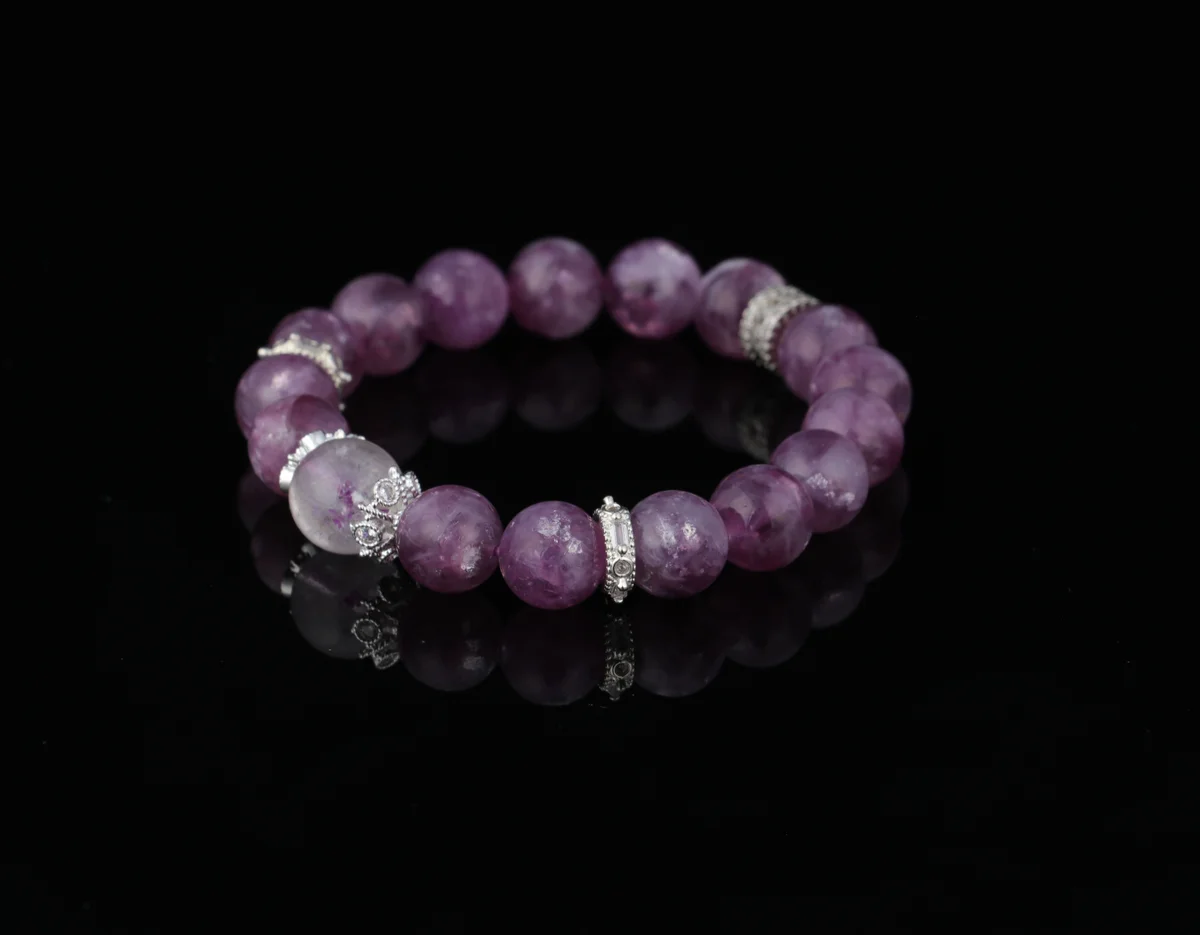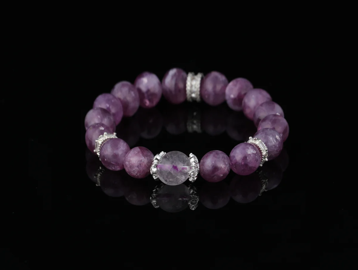 Natural Purple Muscovite & White Crystal Bracelet - Dual Energy Wealth & Fortune Bracelet for Birthday Customization, Gift or Personal Use