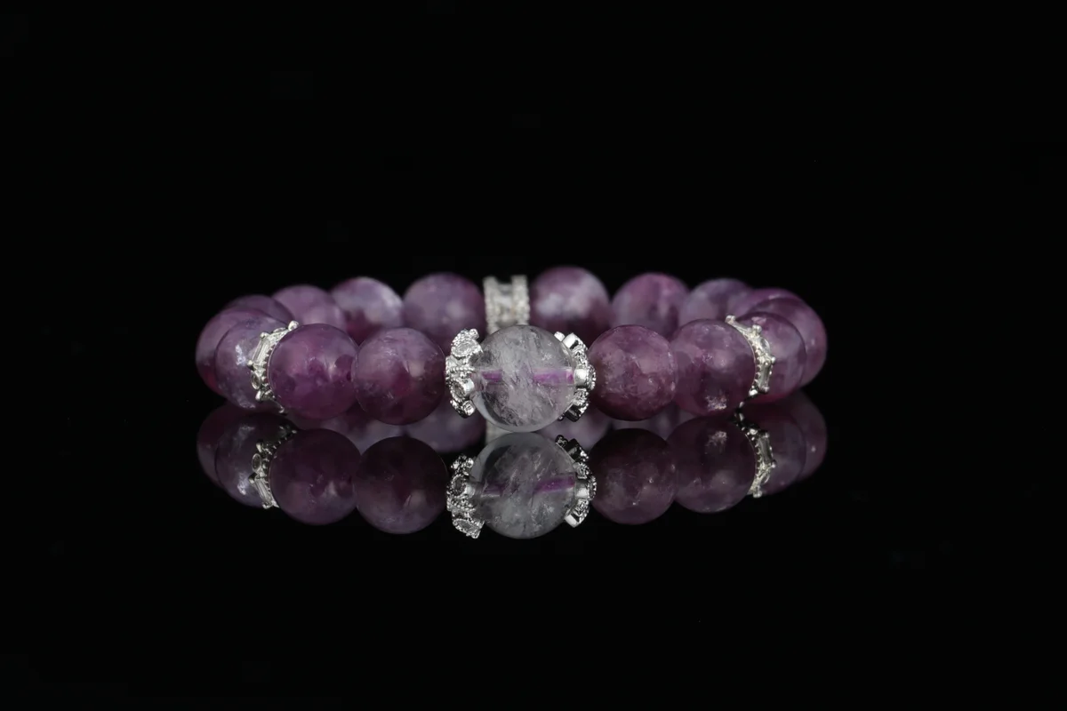 Natural purple muscovite and white crystal combine to create a bracelet specifically designed for attracting wealth and good fortune. Purple muscovite attracts unexpected wealth and noble people, while white crystal purifies the energy field. The dual energy helps your career flourish and wealth flow abundantly. Each bead is hand-polished from natural raw minerals, supports birthday customization to align with personal destiny. For personal use, it gathers good luck; as a gift, it conveys blessings. Wearing it daily creates a portable energy field.