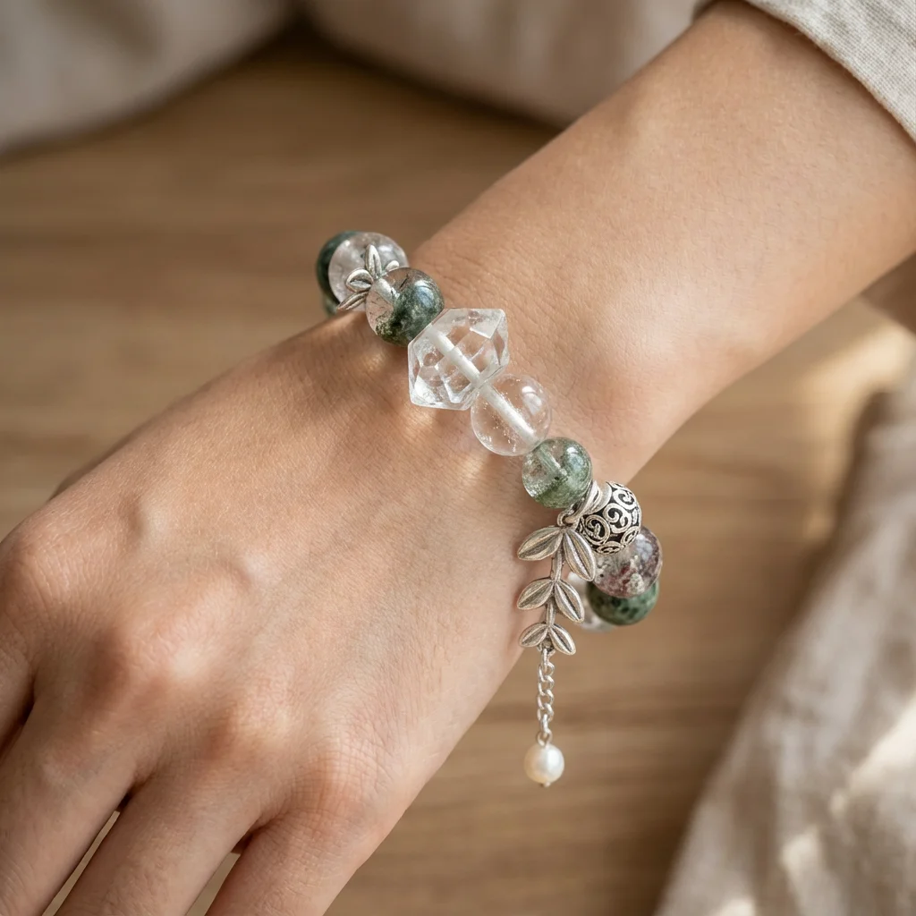 A.t are the main benefits of this Green Tourmaline and Clear Quartz bracelet? Answer: According to the product description, this bracelet combines the dual energies of Green Tourmaline and Clear Quartz. Green Tourmaline is primarily known for attracting wealth and enhancing career success, helping to draw good fortune and prosperity. Clear Quartz, on the other hand, has the effect of purifying the mind and body. Together, they create a five-element energy field designed to clear obstacles and empower the wearer's efforts. It is especially suitable for individuals seeking to break through current limitations and improve their career and financial prospects.