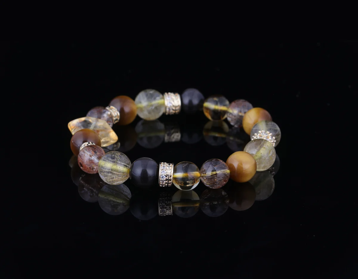 -30%Natural Golden Rutilated Quartz Bracelet Attracts Wealth & Boosts Career | Super 7 Citrine Tower Crystal | Birth Chart Customized Five Elements Array | Master-Blessed Unisex Design