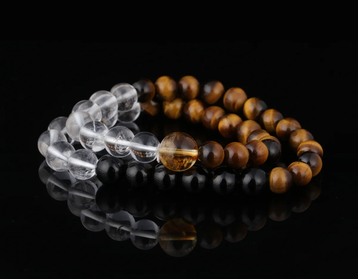 -37%Birthdate Customized Natural Tiger's Eye Clear Crystal Obsidian Triple Stone Stacking Bracelet - Wealth Attracting Fortune Changing Evil Warding Energy Stone Unisex