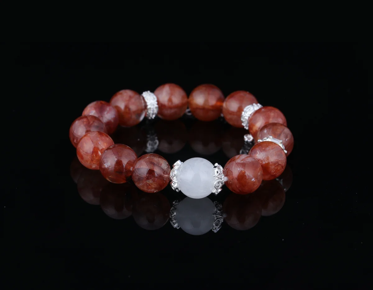 -32%Natural Red Phantom White Crystal Bracelet | Five Elements Gold-Fire Energy Bracelet | Customized Destiny Lucky Beads