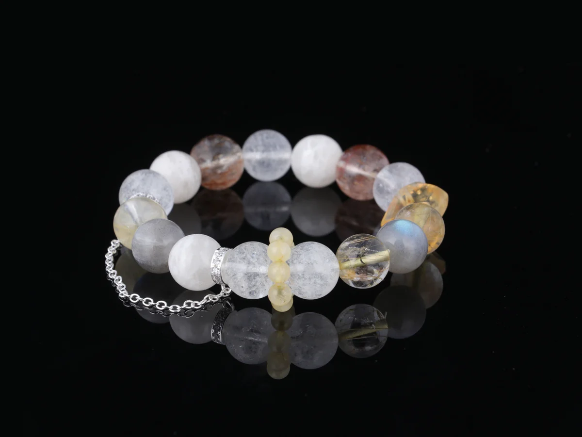 -28%Natural Arucha Moonstone Gold Rutilated Quartz Bracelet Attracts Wealth, Boosts Career, Aids Sleep, Enhances Luck, Customized by Birth Five Elements Energy Bracelet