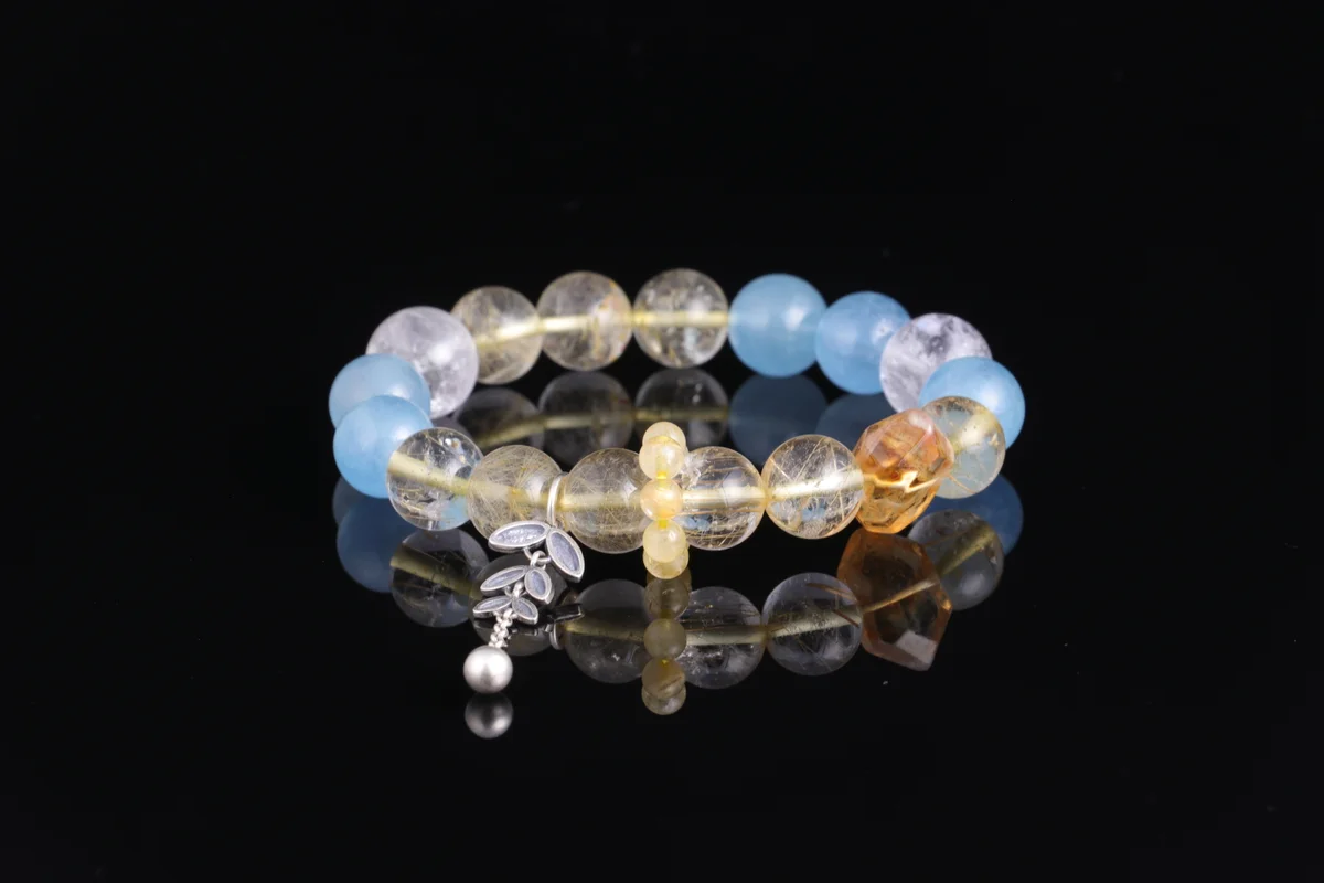 -36%Natural Aquamarine Gold Rutilated Quartz White Azeztulite Bracelet - Birth Customization Five Elements Energy Crystal Wealth Attraction Fortune Enhancement Foundation Bracelet