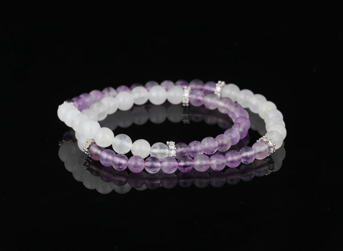 -30%Natural Amethyst White Aze Bracelet for Stacking | Attract Wealth, Aid Sleep, Purify, Bring Good Fortune, Energy Bracelet for Men and Women