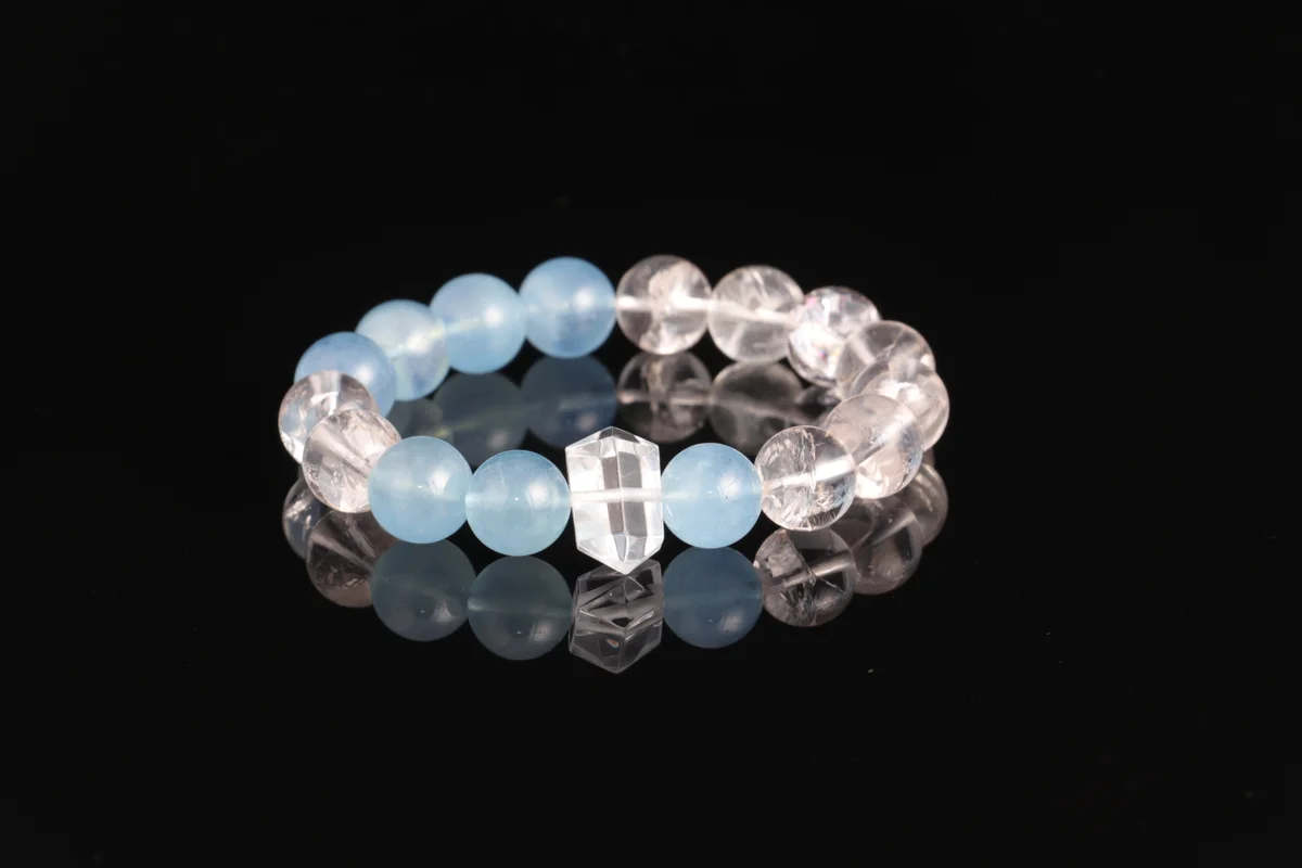 -38%Natural Aquamarine White Crystal Bracelet Birthstone Custom Energy Bracelet Attract Wealth and Blessings Balance Emotions Gift or Personal Use