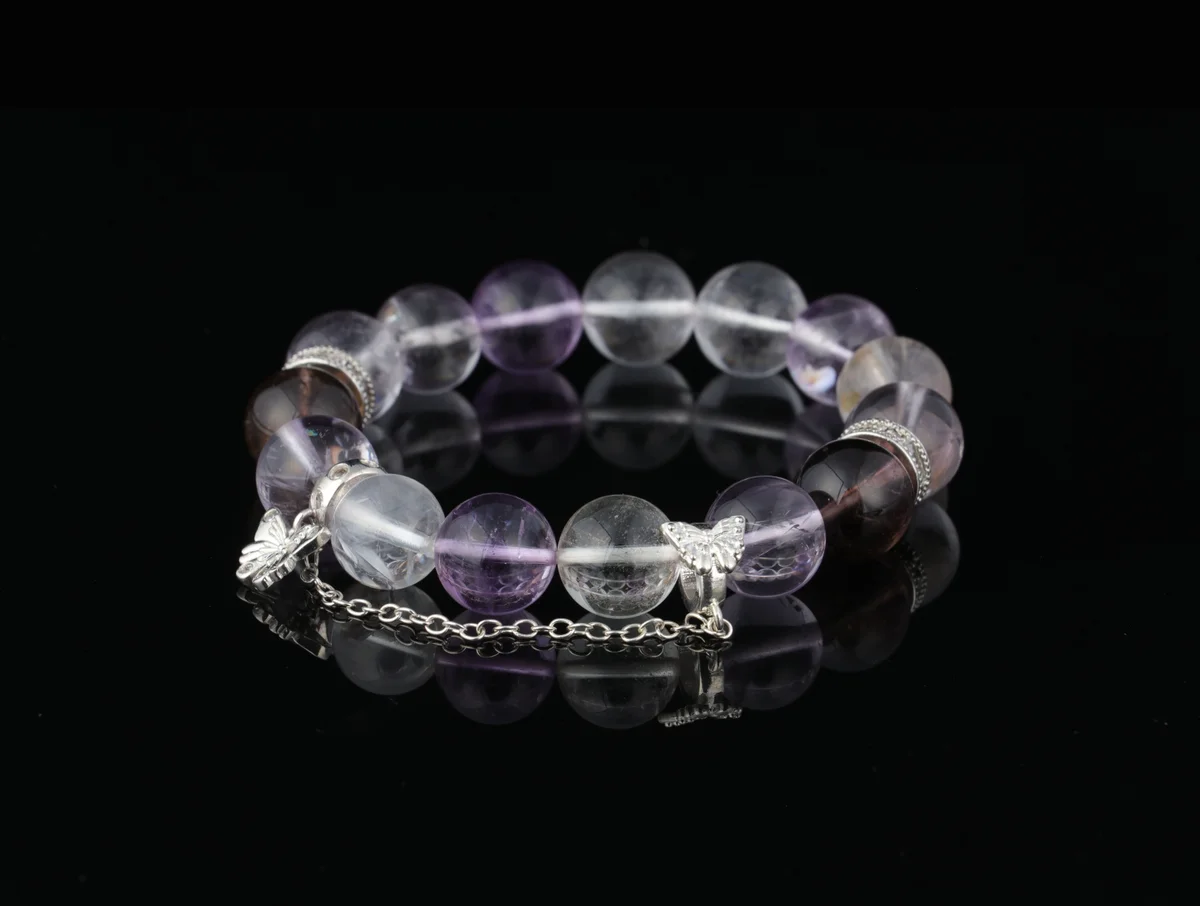 -34%Natural White Purple Smoky Tri-color Crystal Bracelet - Birth Element Customized Purification Wisdom Enhancement Aura Stabilization Energy Bracelet
